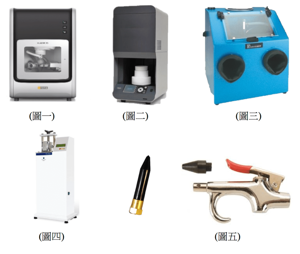 3. 儀器名稱:噴砂機(圖三),壓縮空氣需求量:(A)手動斷續120LPM,壓力5.5~6.0barg;(B)自動持續20分以上250LPM,壓力5.5~6.0barg