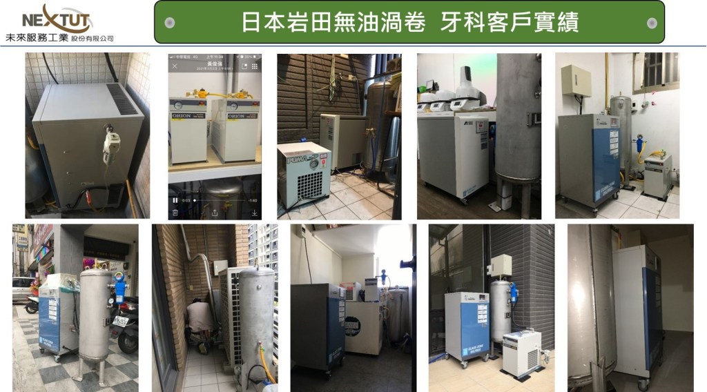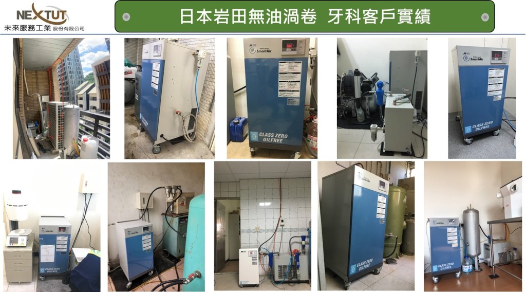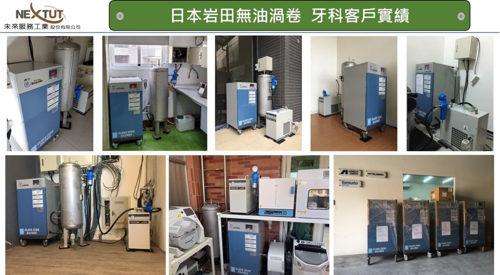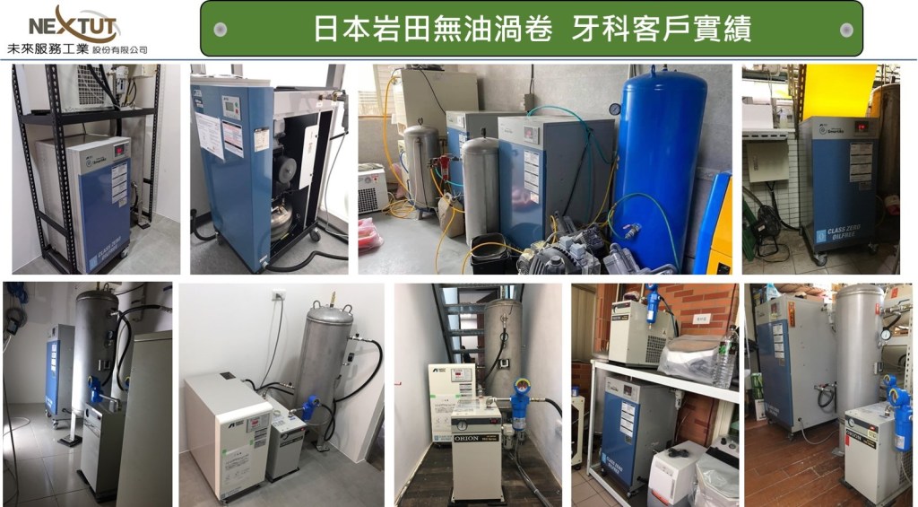 日本岩田無油渦卷式空壓機是世界第一台上市銷售運轉的渦卷空壓機, 上市超過30年所累積銷售台數超過600,000台, 每年銷售超過40,000台以上! 在日本牙科應用是無油式空壓機第一品牌!!