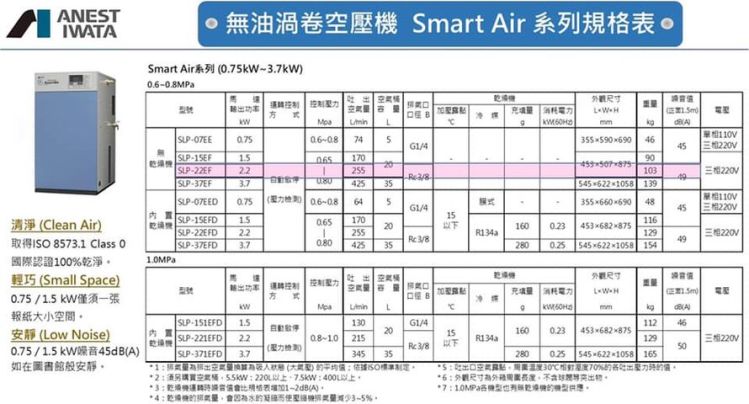 日本岩田無油渦卷式空壓機在牙科適合的機型