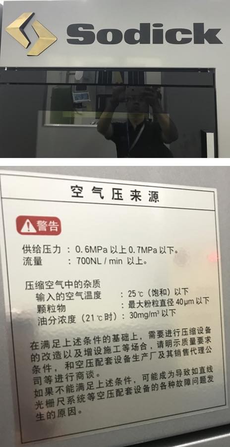 以SODICK內置氮氣產生器的3D金屬列印加工機為例,壓縮空氣規格通常要求壓縮空氣操作壓力6~7公斤,空氣品質要求(下圖)壓力露點攝氏25度C以下、最大固態顆粒40Micron以下、油氣含量每立方米30毫克以下,否則容易導致光學尺(光柵尺)…等故障。我們認為重點還是在於壓縮空氣潔淨程度,因此採用無油式空壓機是避免耗費精神隨時注意擔心油氣、固態顆粒…等污染物(問題是如何注意?)阻絕污染根源做法。