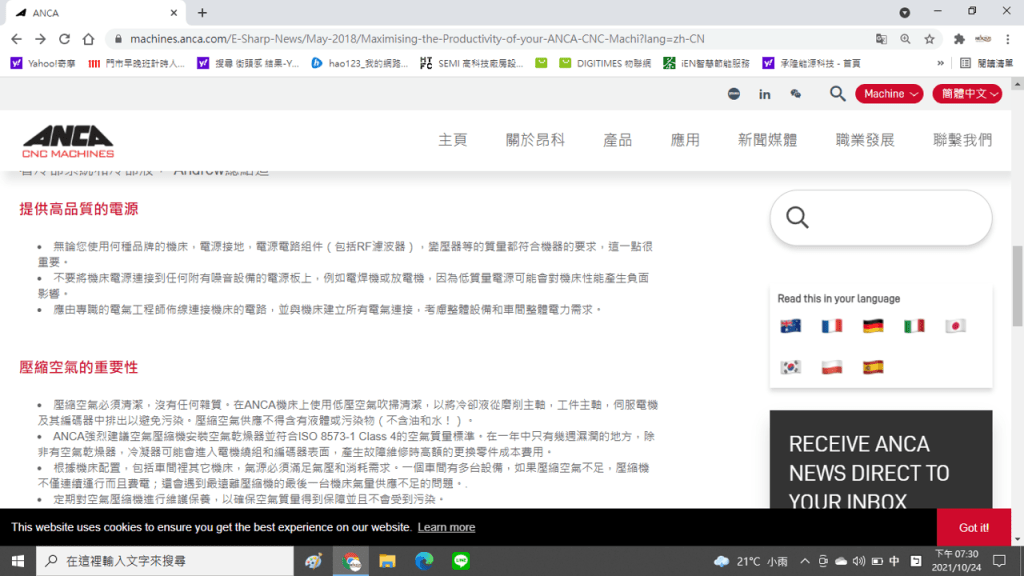 主軸或加工機的壓縮空氣品質要求, 各位可以參考上述網路路徑查詢:
