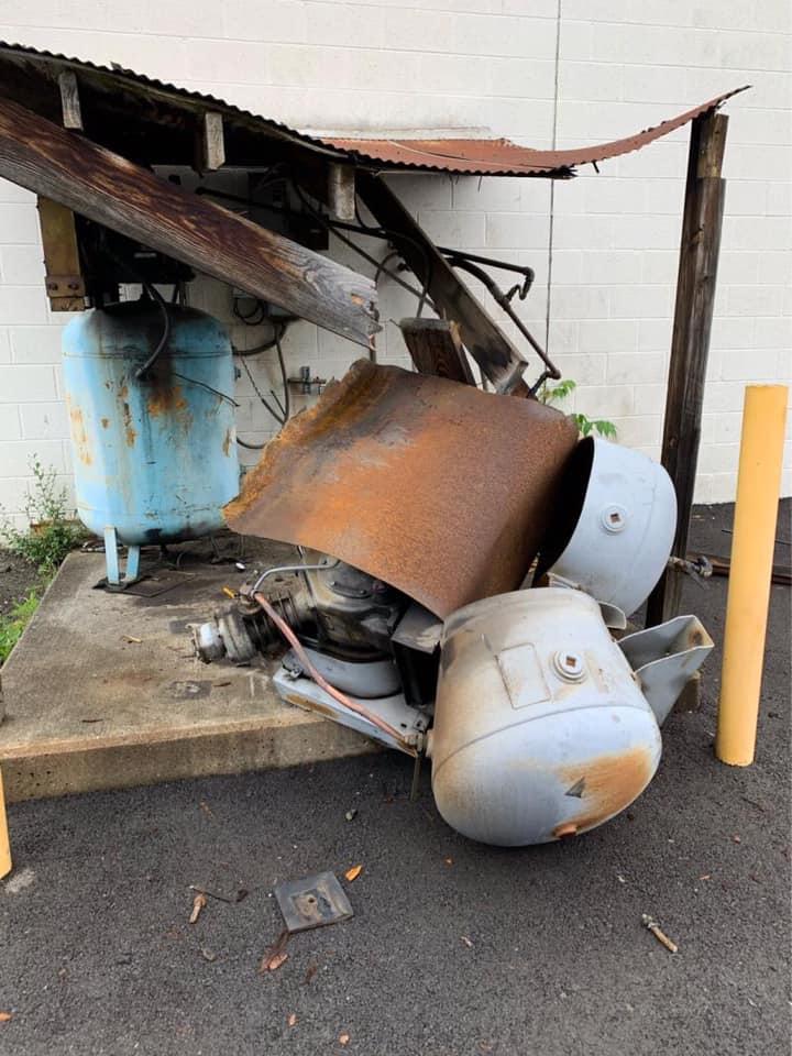 - 材質是否為不銹鋼材質(SUS-304或SUS-316)?有油式空壓機的潤滑油具有油膜可以降低碳鋼氧化生鏽,但是還是會有生鏽而桶身鍍鋅鋼板(碳鋼 SS-400)變薄的風險。無油式的空壓機系統因為完全沒有油膜,因此非不銹鋼的空氣桶或管路接頭五金另件更是會加速生鏽 (請見下圖)。