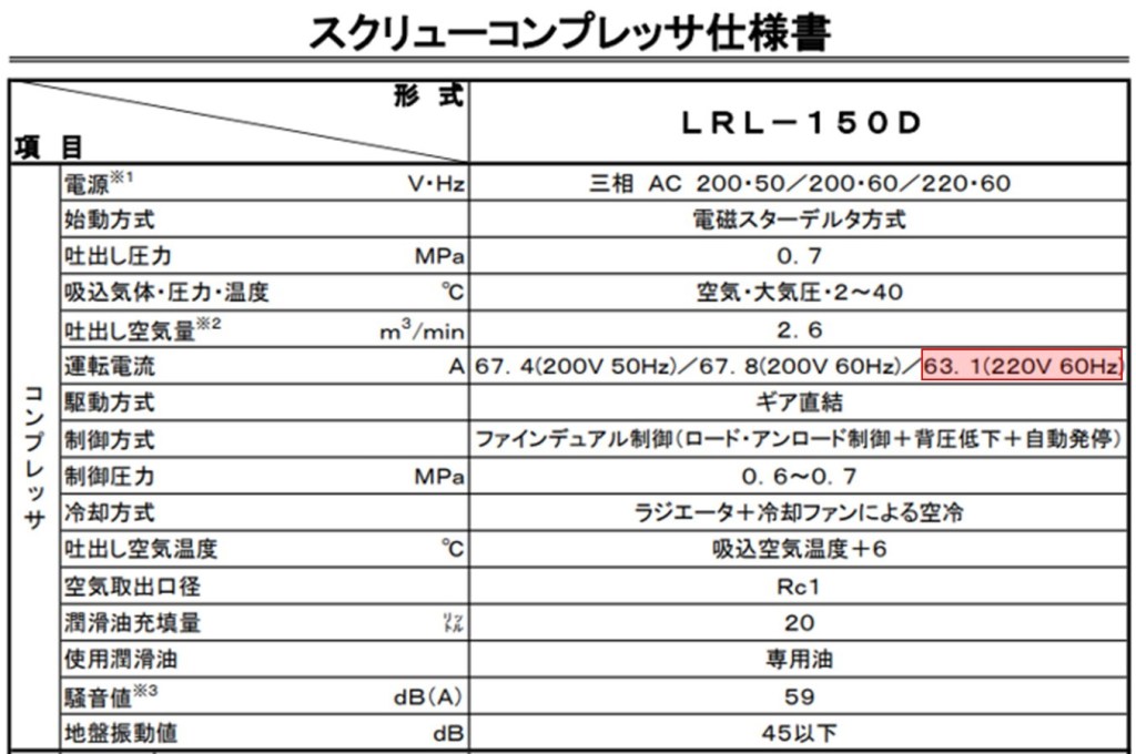 一, 岩田20馬力螺旋式空壓機啟動電流 (三相 /60Hz / 220V):額定電流63.1A x 3.0倍~5.0倍 = 189.3~315.5A (安培)。