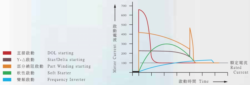 直接啟動雖然啟動電流最大, 但是啟動時間最短;其他方式要完全啟動需要較長的時間,例如:Y-Delta啟動的時間是直接啟動的四至五倍左右,啟動電流過大就有可能造成整個機構瞬間壓降或主要變壓器跳脫。