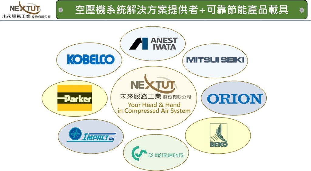公司成立之前經營團隊就定位 未來服務工業 的企業使命是 : 讓客戶安心輕鬆地使用好的工業產品系統服務方案! 而將自己定位為亞太區無油空壓機系統PaaS (Product as a Service) 營運服務商。要達成這樣的使命與定位必須具備好的系統規劃專業、客戶營運平台與服務模式 (未來服務工業自己的核心能力) 以及 穩定可靠且環保節能的產品載具,是必然的條件!因此,確認國際品牌符合極穩、極省、極簡三大要件,我們才願意代理經銷與服務!