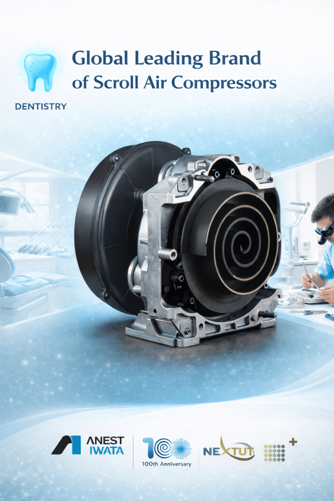 “安心" 與 “專注" 是未來服務工業藉由日本岩田無油渦卷式空壓機系統想要提供給牙醫診所與牙體技術所的, 牙科機構要的不是空壓機, 而是潔淨穩定的壓縮空氣; 更進一步來說, 牙科機構應該在空壓機系統獲得的待遇是 “安心" 與 “專注“!