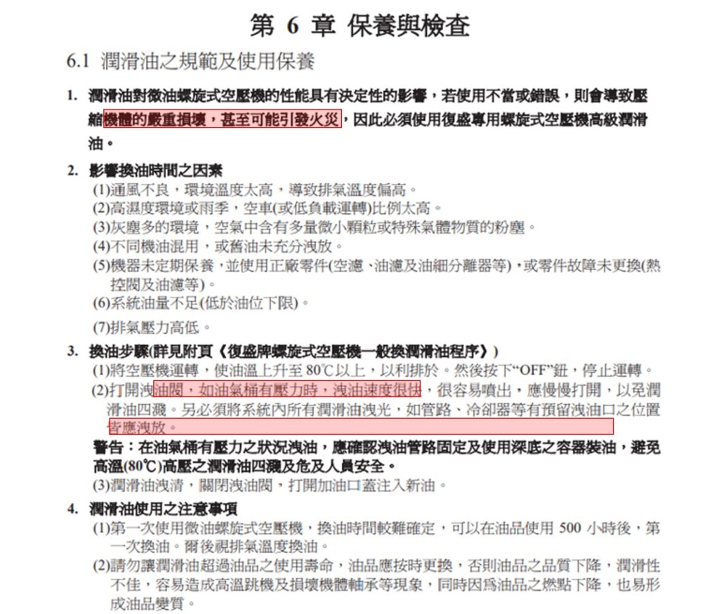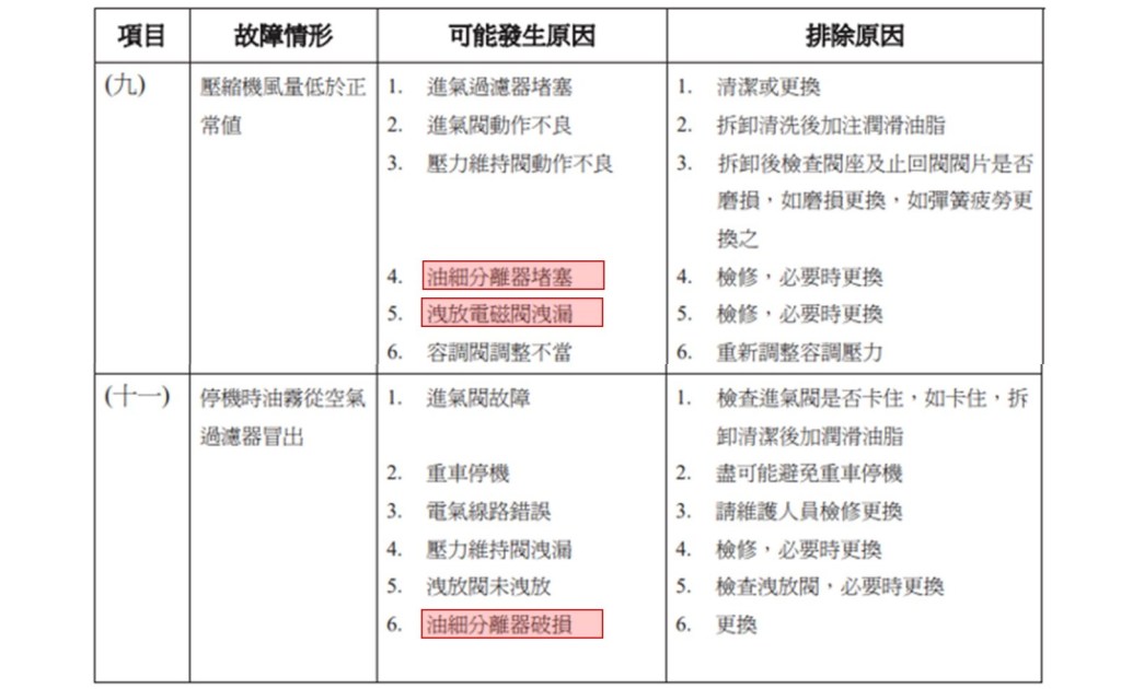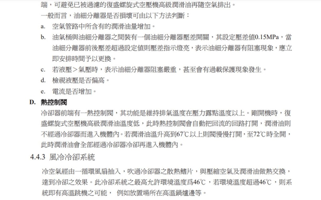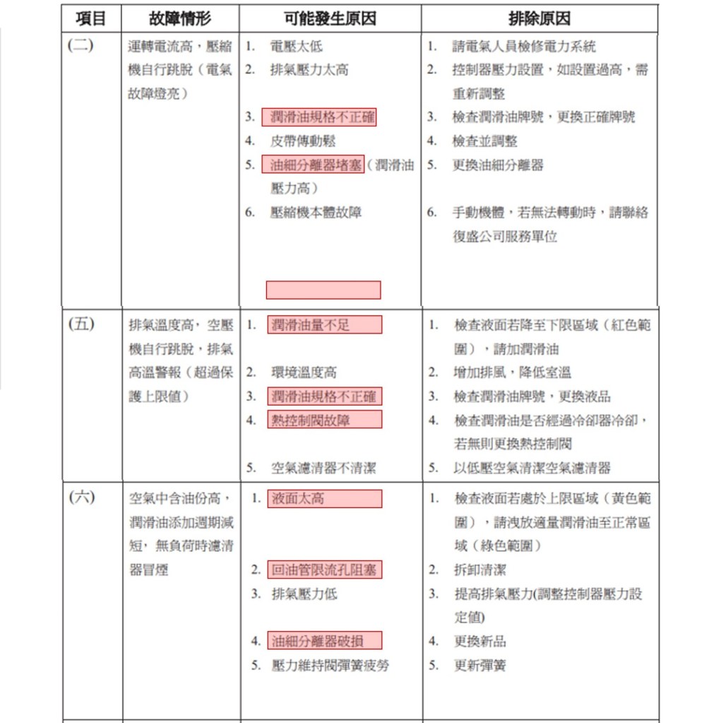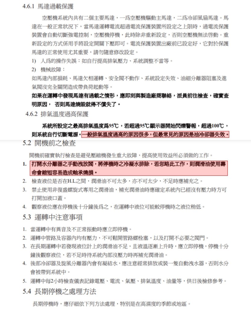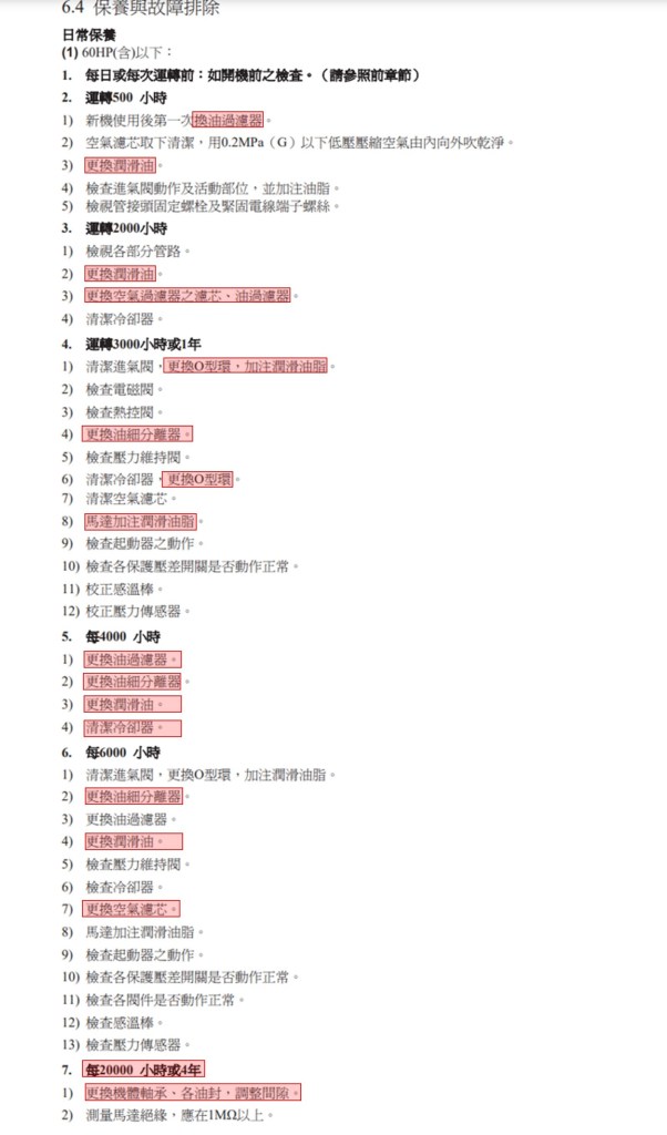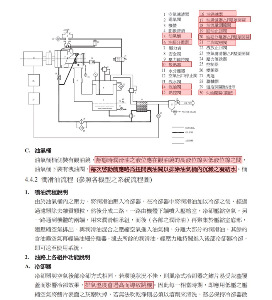 以上資料來源 : 空壓機廠微油螺旋是空壓機使用手冊