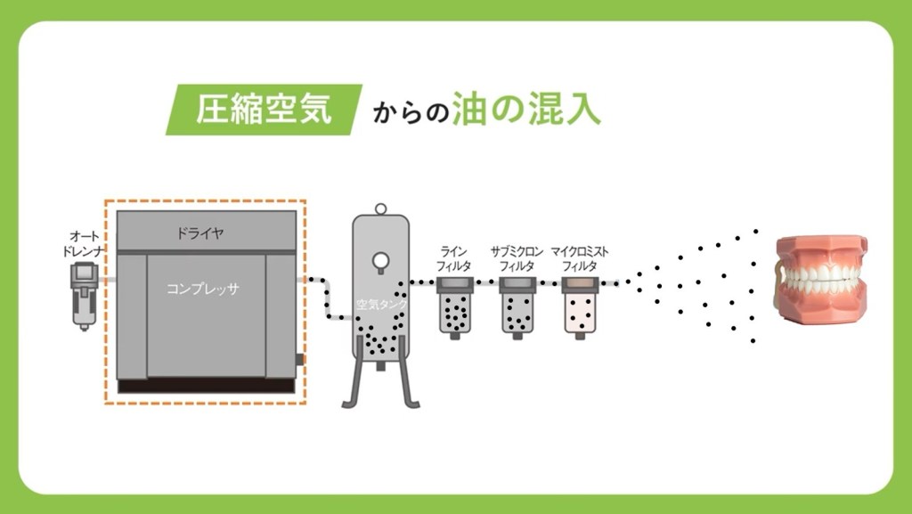 Oil Free, Trouble Free!這是我們長年身處空壓機系統行業所得到的結論;因為有油式空壓機不論在哪裡,都是會面臨三大主要課題的挑戰,尤其在牙醫診所以及牙體技術所的三大課題尤其明顯。這三大課題包括:油氣擴散、作業場所汙染以及後續較高的維護成本。