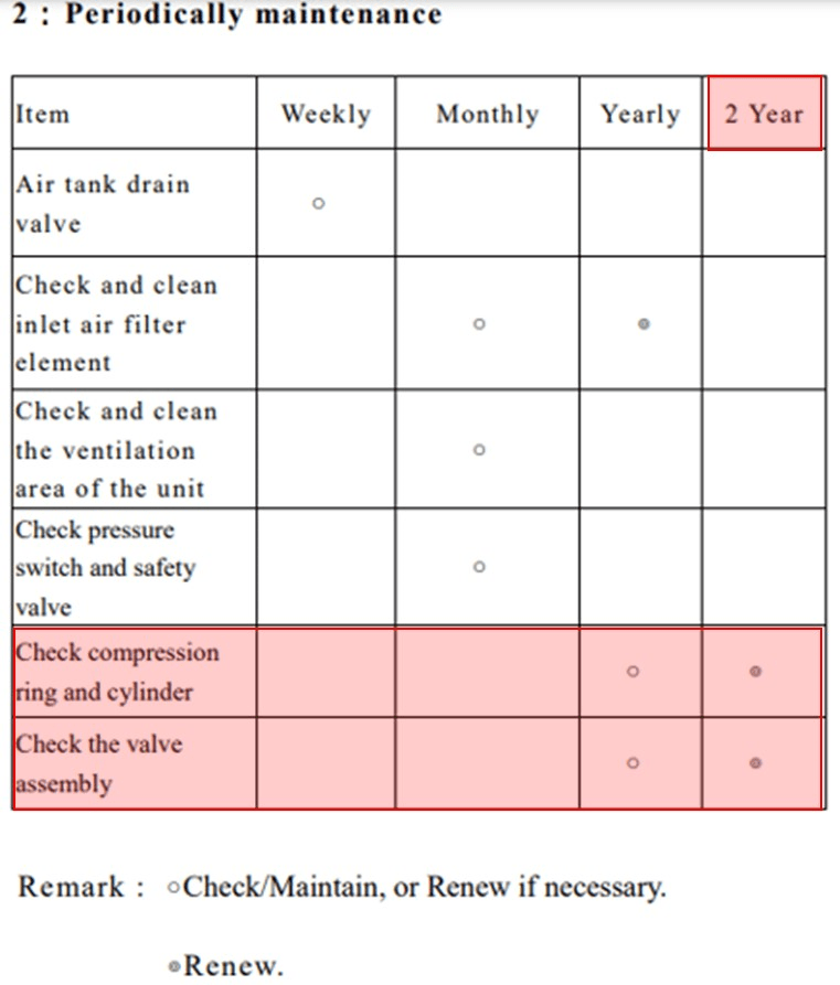 另外一方面,機體本身建議每年檢查且兩年就必須更換氣缸、活塞壓縮環及閥組;往往因為更換不容易且只換零件不划算,所以在機體馬達燒掉之後才會想到換整組的機體馬達….這樣的結果會產生極高的使用者營運機會成本!