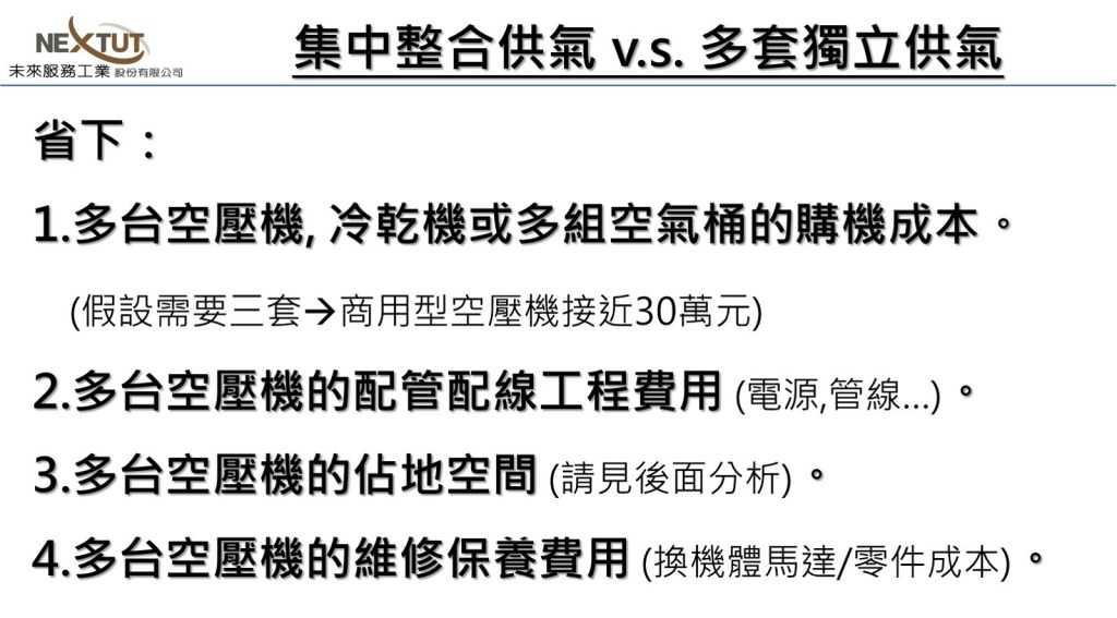 從岩田無油渦卷式空壓機許多客戶的實際案例中可以發現, 客戶採用一台三馬力或五馬力無油渦卷式空壓機可以滿足整個牙體技術所或牙醫診所的用氣需求, 而與獨立一台車機搭配一套空壓機做比較, 我們可以發現有下列的有形成本與無形機會成本–
