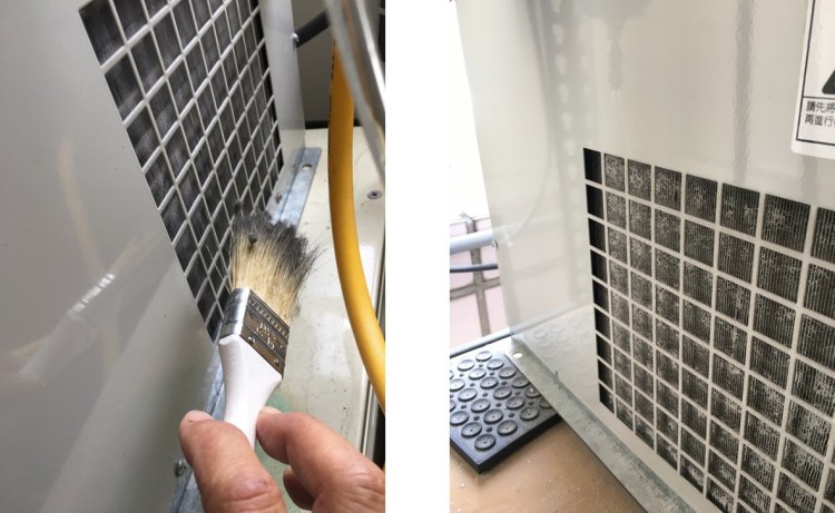 我們會建議依據乾燥機鰭片的髒污程度,每週或每月定期清潔,不管是不是我們家的冷凍式乾燥機,都可以利用長毛刷順著冷空氣吸入側的熱交換器鰭片由上往下刷除異物,然後再利用吸塵器將異物吸掉;我們也比較不建議用壓縮空氣吹,因為反而會將異物或粉塵吹入乾燥機內部,更不容易處理…。