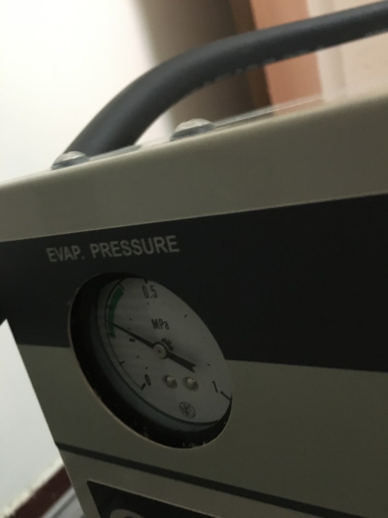 經過清潔過後 (請參考下圖),蒸發壓力就有顯著的差異 (請參考下下圖);這樣的結果就表示熱交換的效果相對有較好,讓整個冷凝與蒸發的冷凍循環產生較好的效果,也讓壓縮空氣的品質相對乾燥,可以達到更佳的壓力露點!