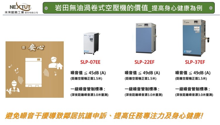 三. 耗氣高負荷的數位化設備或整個機構使用,可選擇岩田渦卷式空壓機