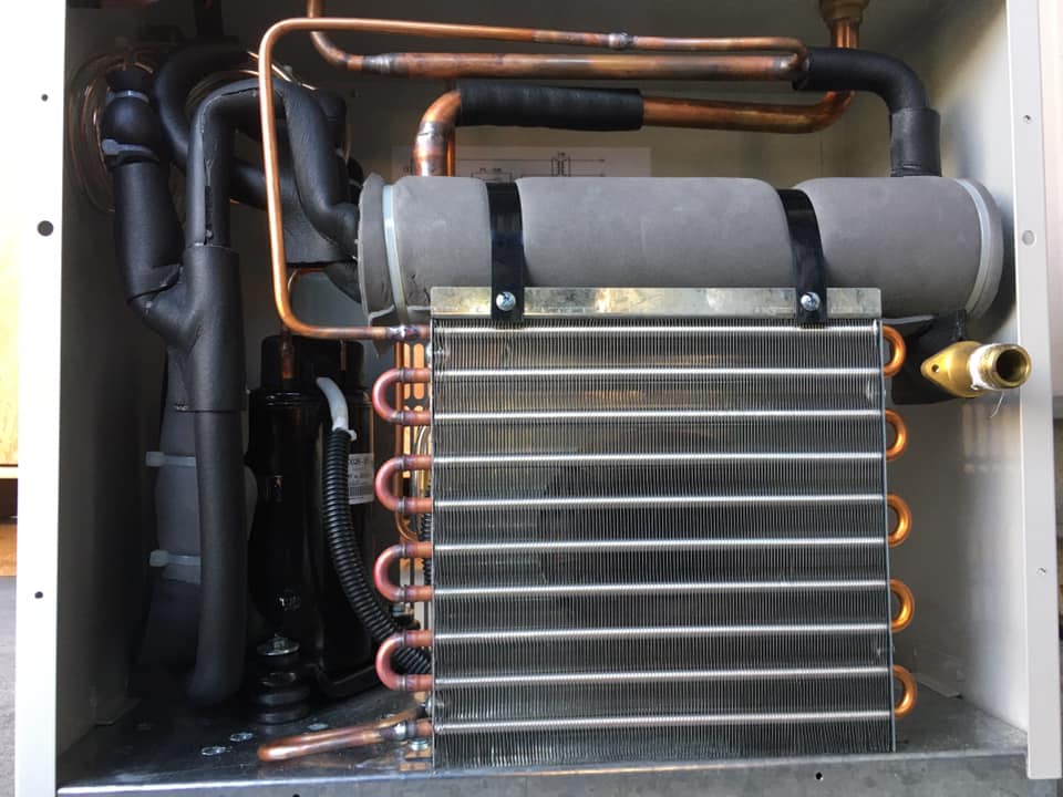 - 銅管的大小, 長度, 材質種類與型式設計不同; 入氣溫度越低的機型, 相同材質型式與尺寸的銅管數量會越少, 所以成本會越低. 有的可能會選用內螺紋增加接觸面積的海軍銅較高材質的銅管來增加熱交換量並減少尺寸數量.
