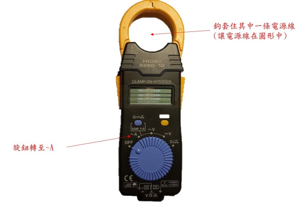 架好三用電錶量測運轉安培數的位置