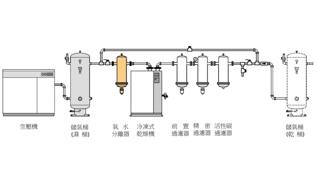 其實多數朋友是沒有安裝冷凍式乾燥機的,更別說是吸附式乾燥機或膜管式乾燥器;但是有一些朋友提到有空氣桶,也有冷凍式乾燥機以及定期排水,為甚麼空壓機管路在末端還是會有水氣?依據我們的經驗彙總如下,各位前輩可以檢查看看: