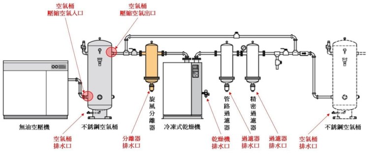 我們嘗試用先期使用過的空壓機房設備系統圖來說明 “溫度" 可能產生的來源。
