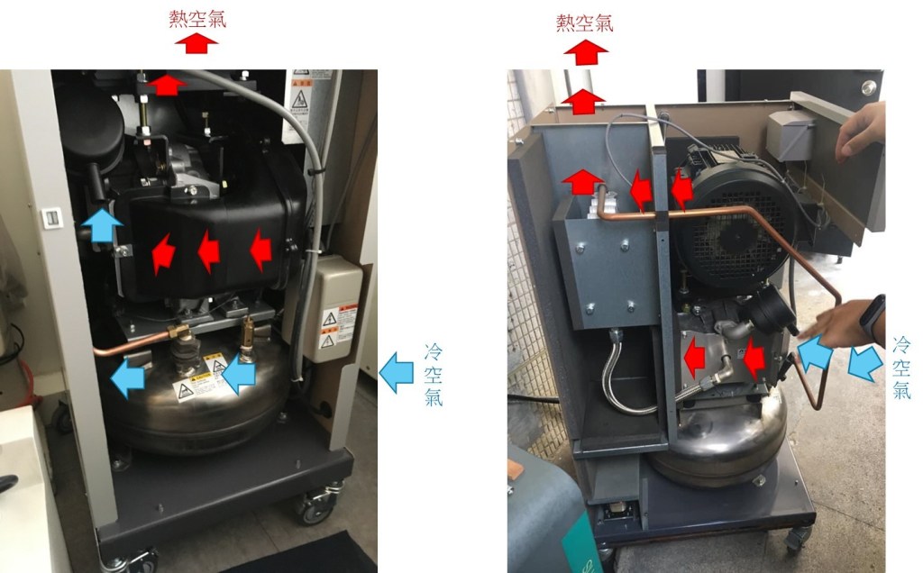 種種設計就是為了讓空壓機內部的熱源盡速排出以降低空壓機內部的溫度。
