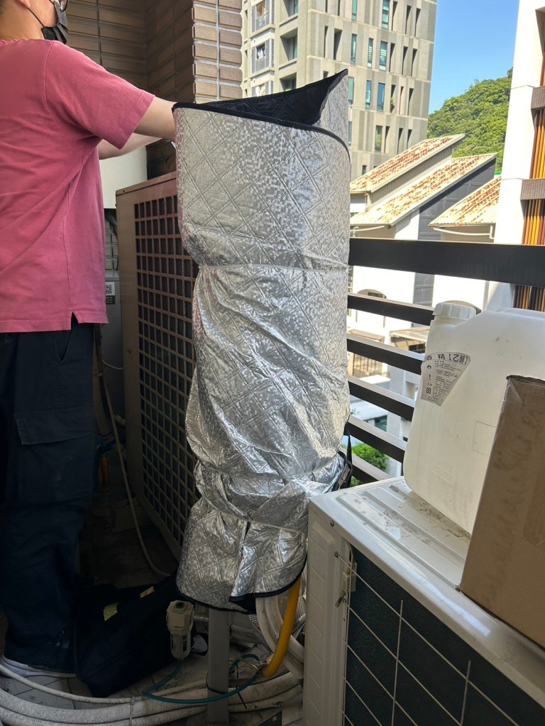 又例如影響冷凝水怯除與乾燥機能力的要素主要有:選型合適性、乾燥機本身能力、環境溫度與壓縮空氣入氣溫度;有時候環境空間問題,因此空壓機系統設備可能會有直接日曬的情形 (例如照片的空氣桶直接日曬,因此必須採取防曬隔熱措施),則也會影響乾燥能力造成空氣管路中有水氣與冷凝水。