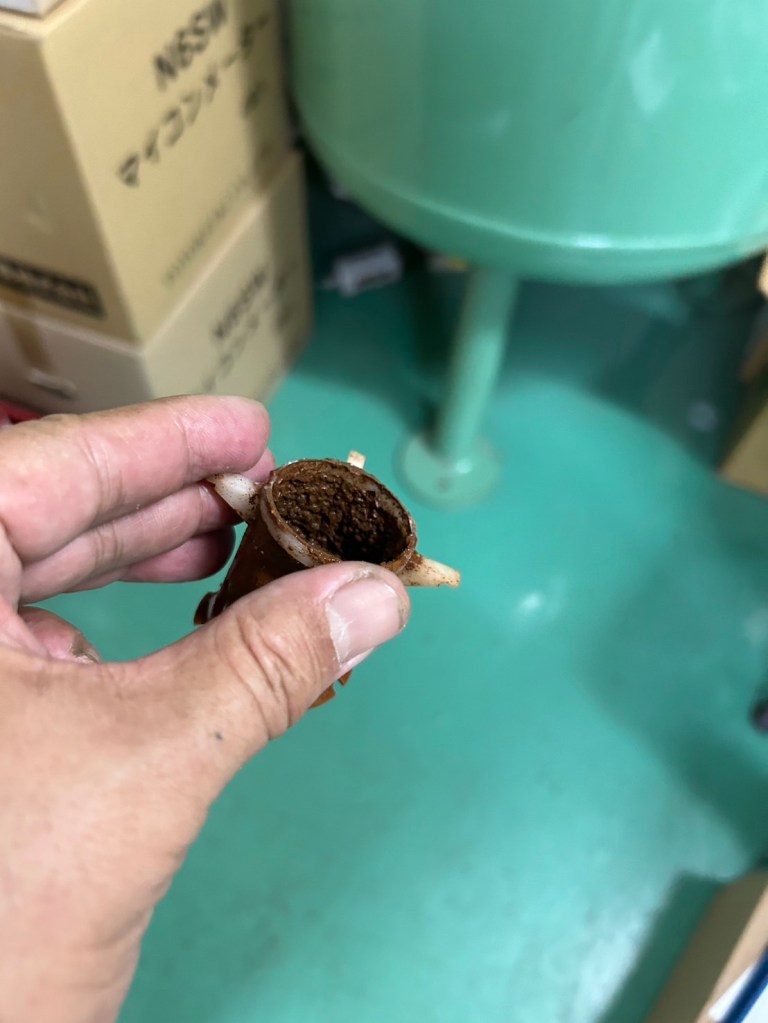 我們來看一下有油式空壓機採用非不銹鋼空氣桶產生的有油以及有鐵屑的冷凝水影片,如果後面沒有經過妥善處理,則油氣、水氣與固態顆粒都會隨著壓縮空氣流動順著空壓管路逸散影響醫事人員健康、造成診療或成品品質以及影響精密儀器設備壽命/可靠度!