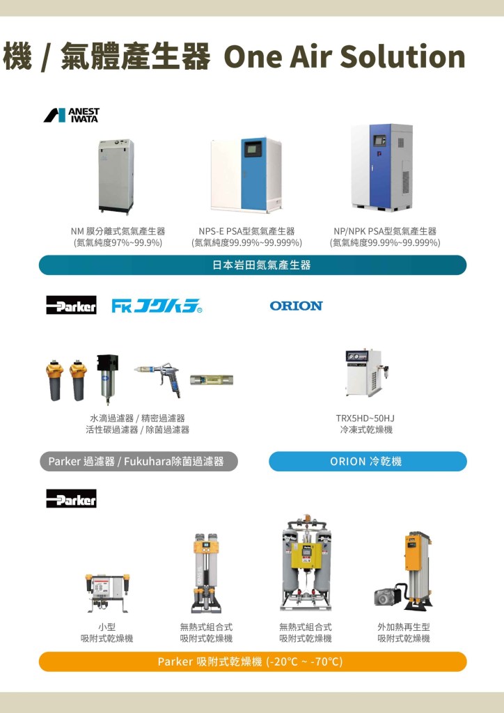 - 空壓機角色:空壓機可與氮氣發生器(PSA系統)結合,從空氣中分離氮氣並供應至列印機。