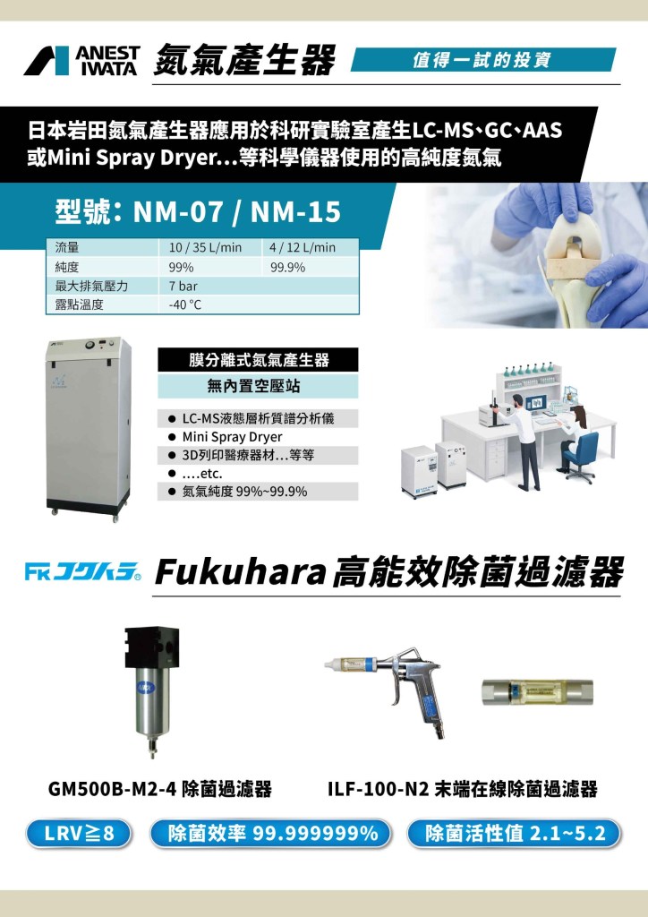 - 特性:氮氣純度需達99%以上,空壓機需提供穩定壓力支持氮氣生成。